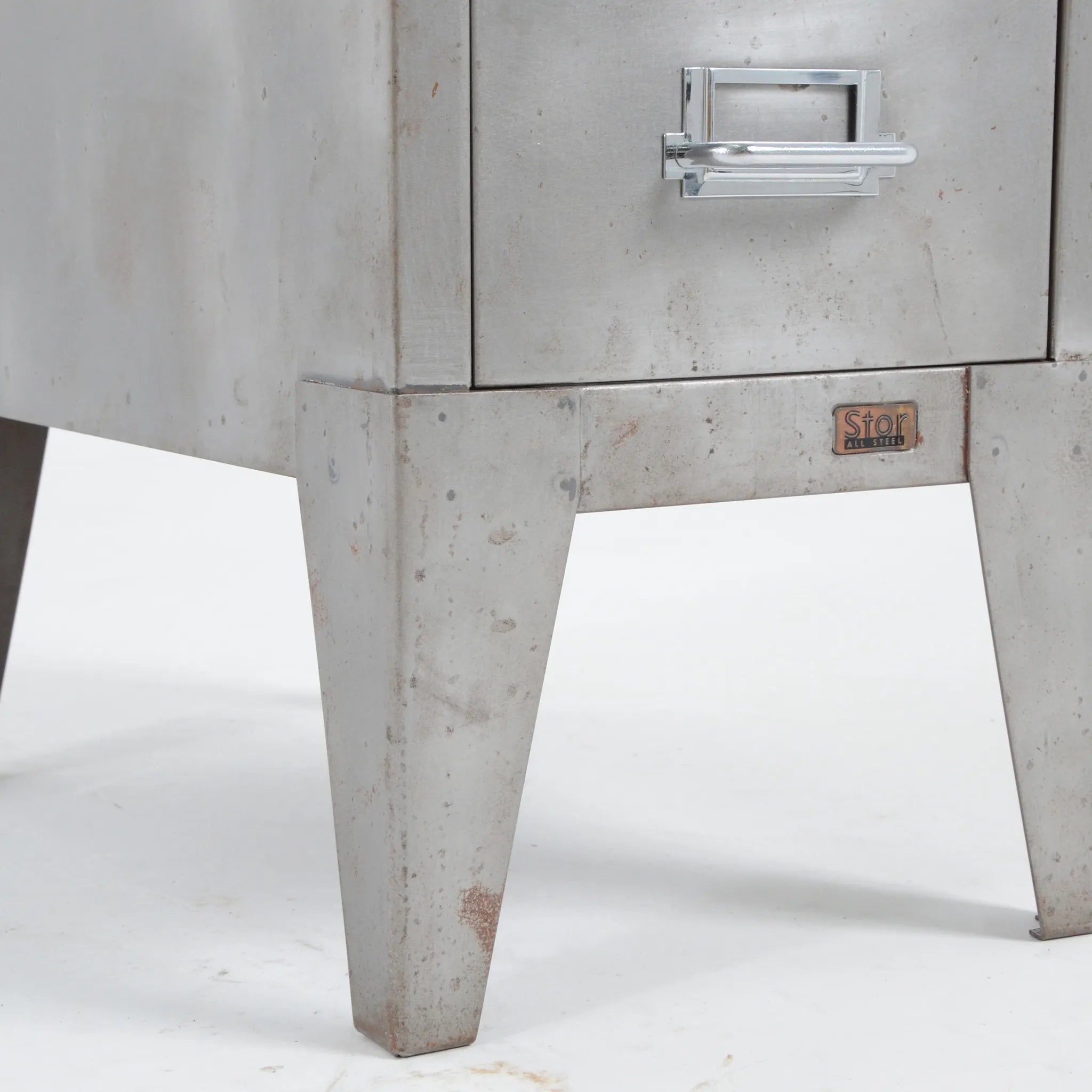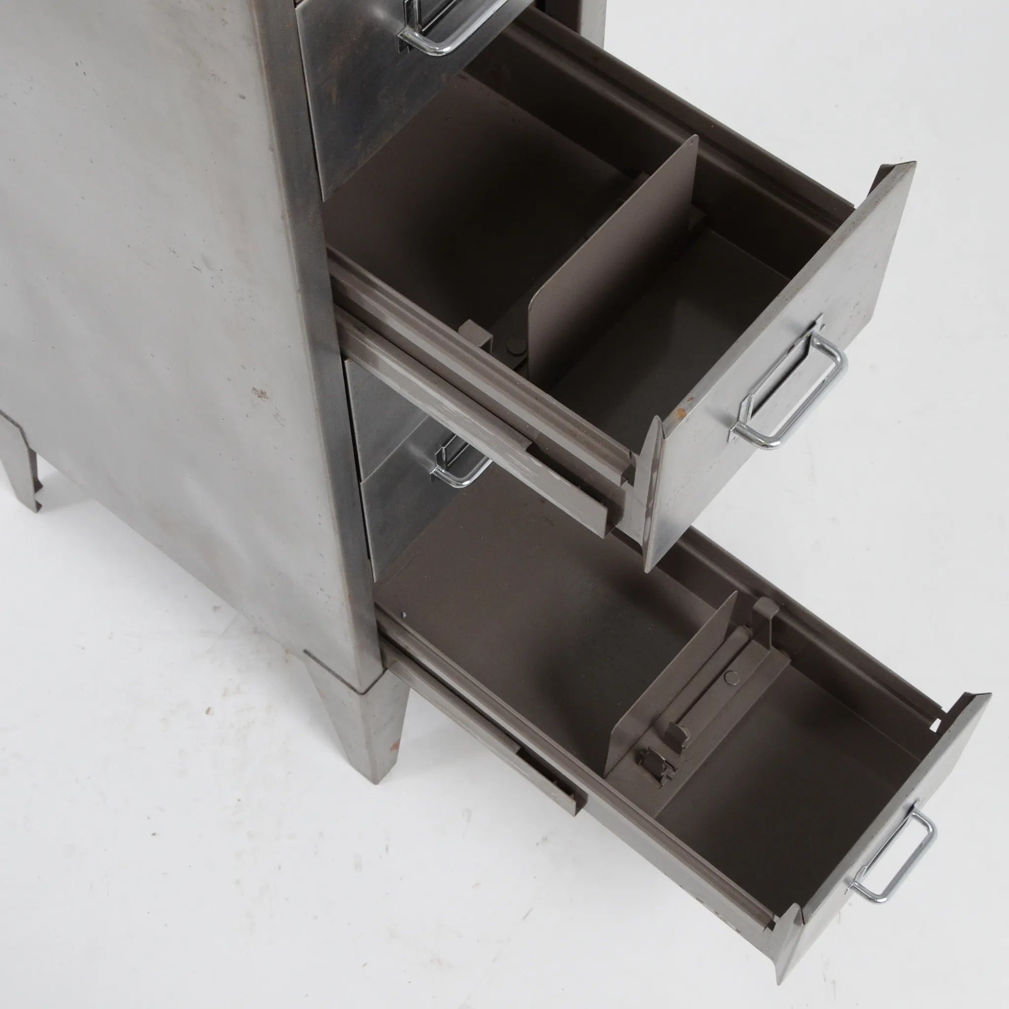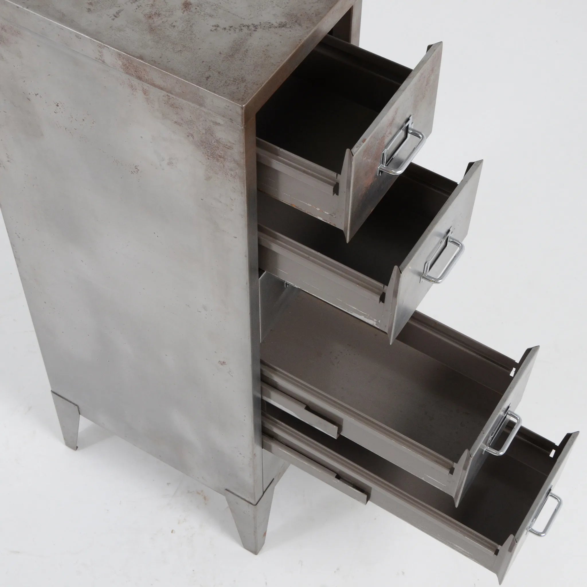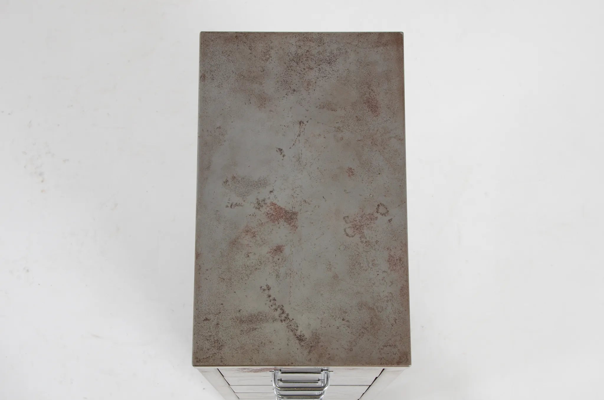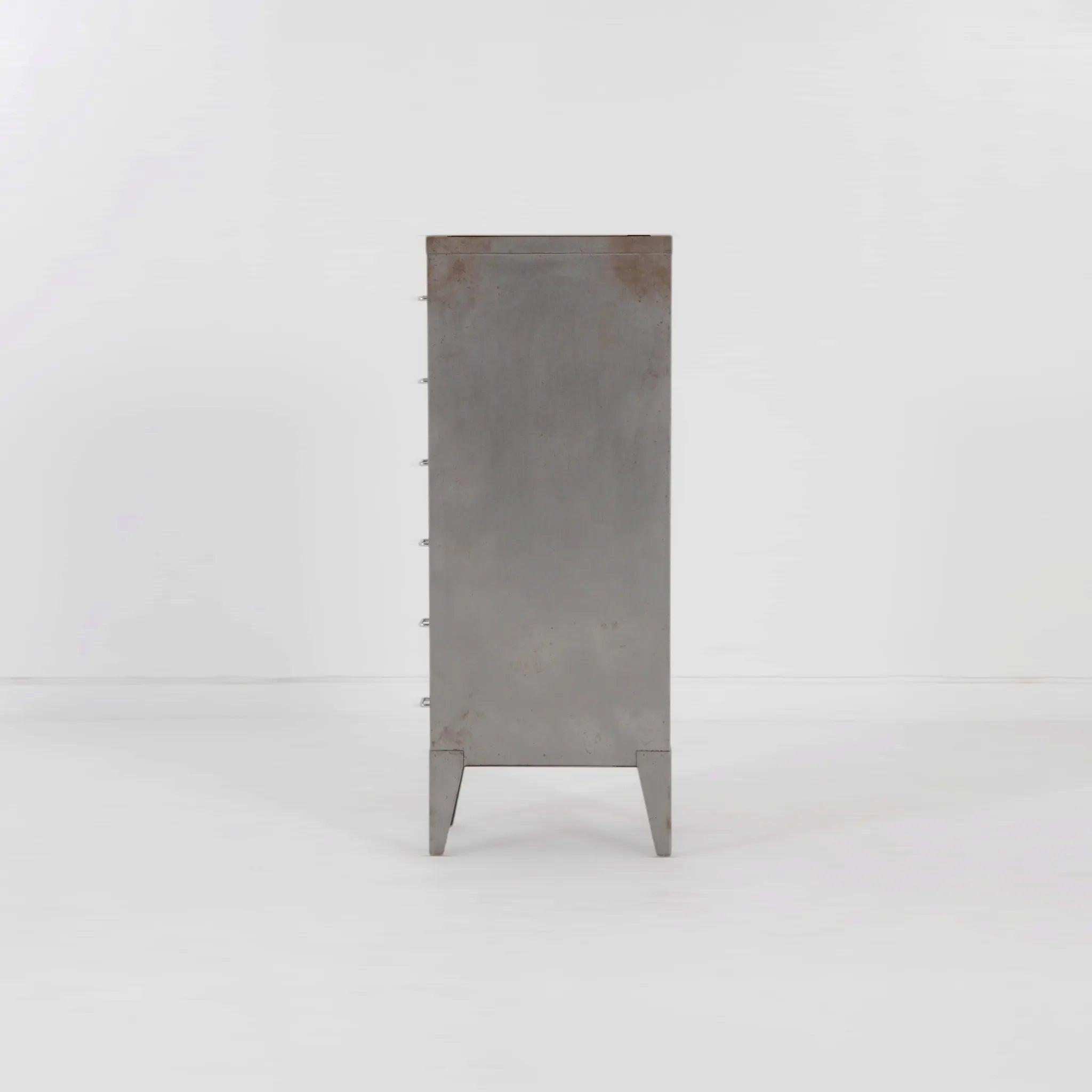 インダストリアルなメタルキャビネットは、6段の引き出し付き、幅は24cmとコンパクトで、隙間にすっぽり収まるサイズ感です。オフィス、ショップ用の什器としても、使用頻度の高い備品や書類などを分類してたっぷり収納でき、実用性も抜群です。