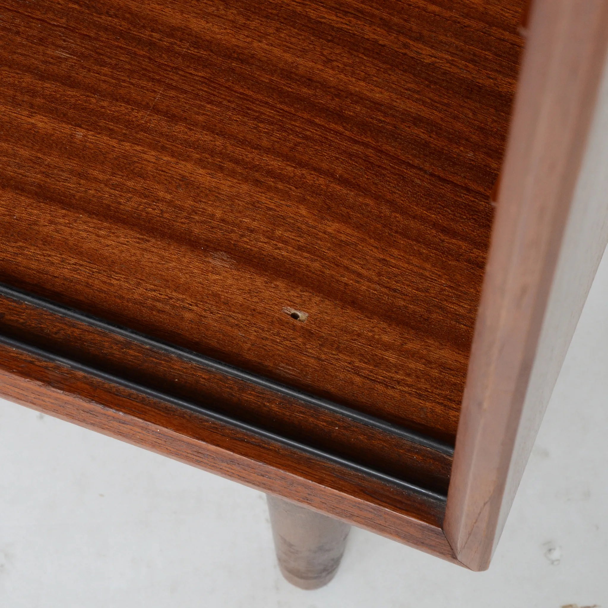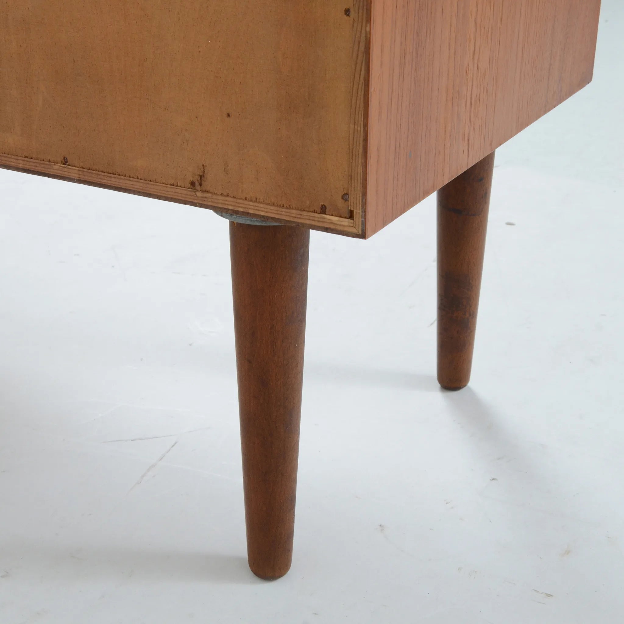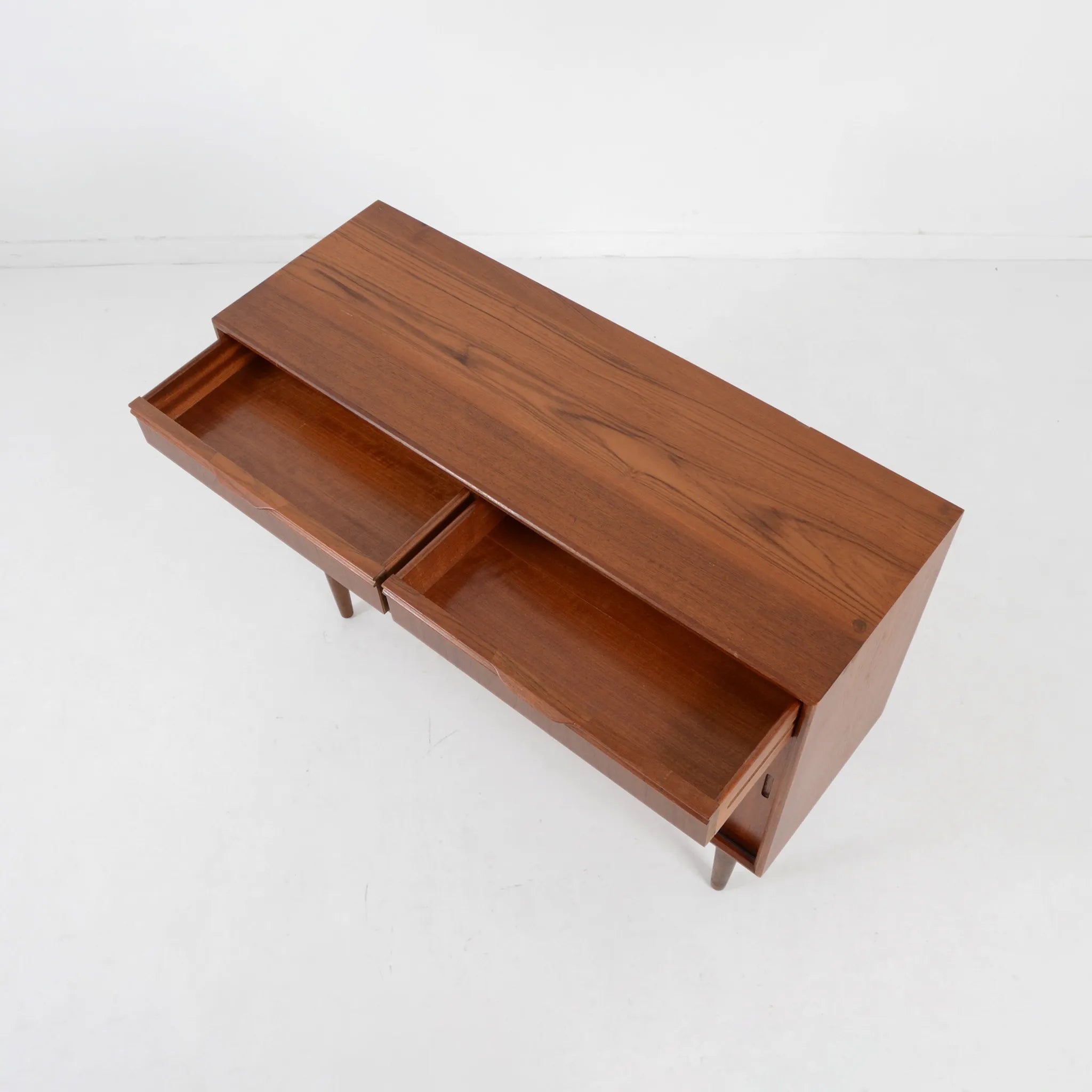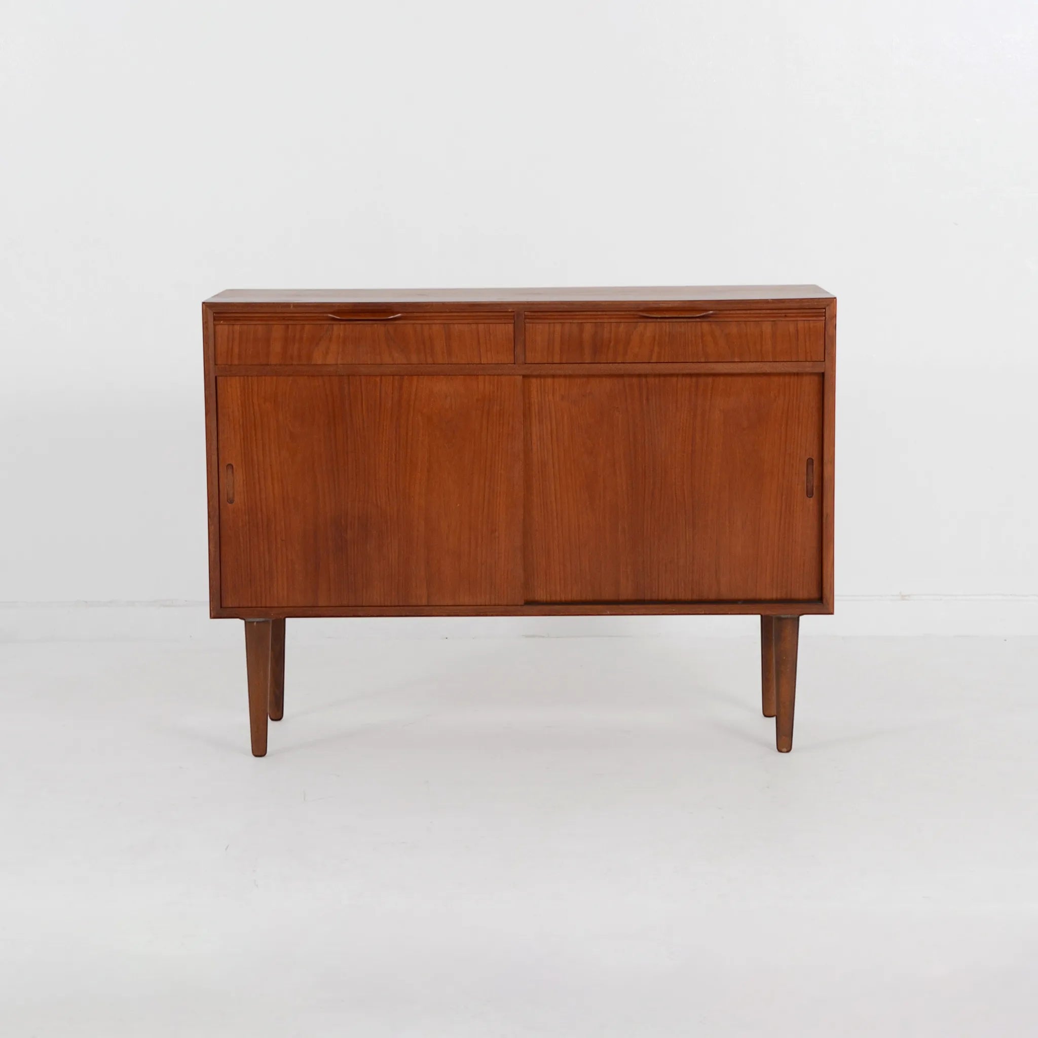 デンマークのオフィス家具メーカー、Bjerringbro Kontor Mobler社のキャビネット。選び抜かれた美しい木目から上品さを感じます。扉の取っ手は掘り込み式のシンプルな形状ですが、より木目を美しく感じさせるための技術のひとつであり、手の込んだ接合部分の造りとともに、こちらの会社の特徴的ディテールです。棚板枚数も多いので、細かくきれいに整理整頓できそうです。