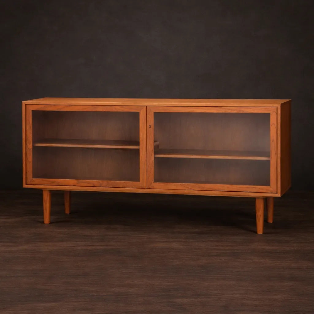スウェーデンで買い付けたサイドボードは、ガラス扉付きでなかなか出会えないアイテム。扉の枠は、額縁のようなデザインで、見せる収納として中に仕舞うアイテムをアートのように演出してくれるかも。リビングルームに置いて、サイドボードとしてはもちろん、本棚やカップボードとしても活躍してくれそう。