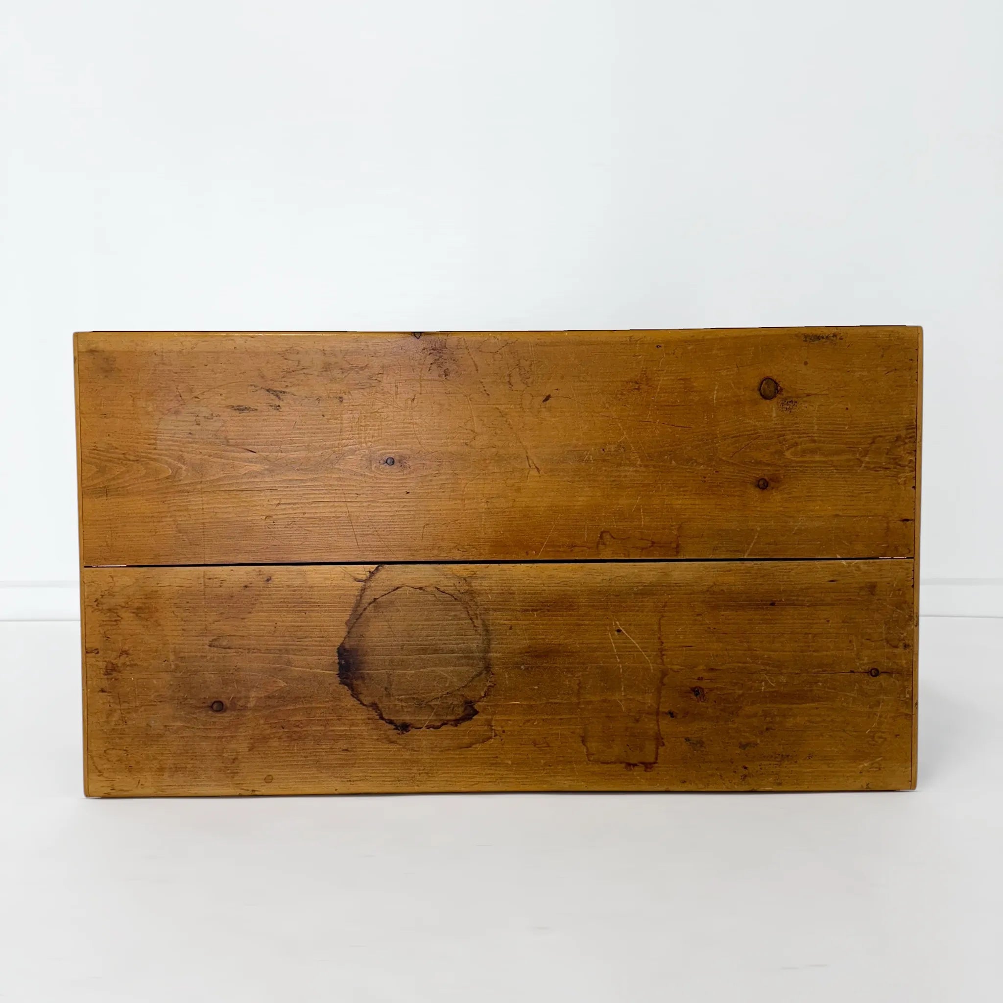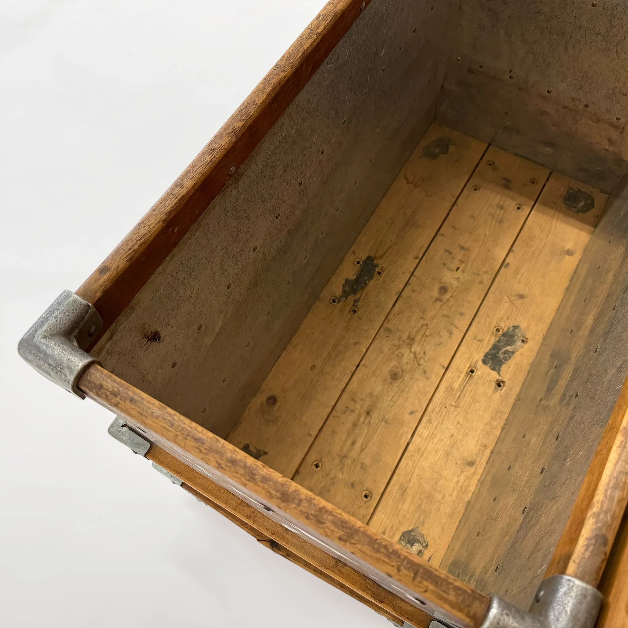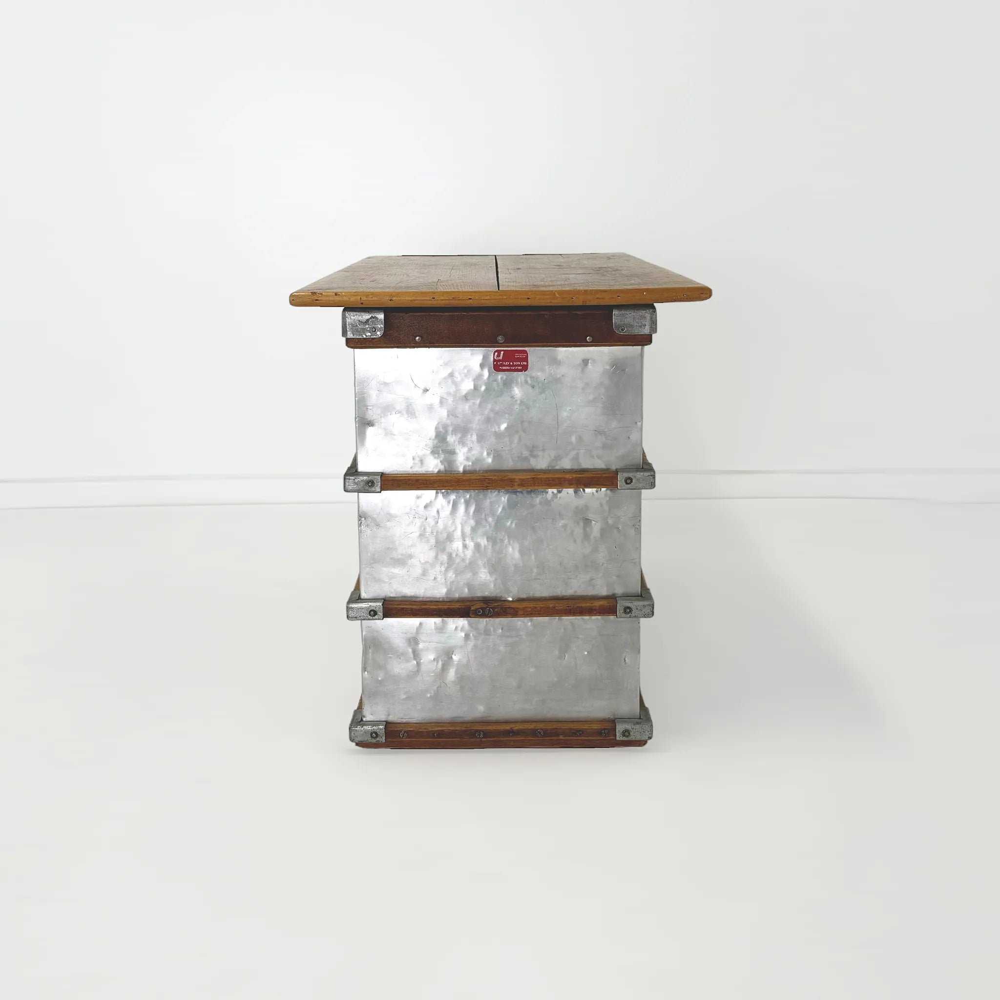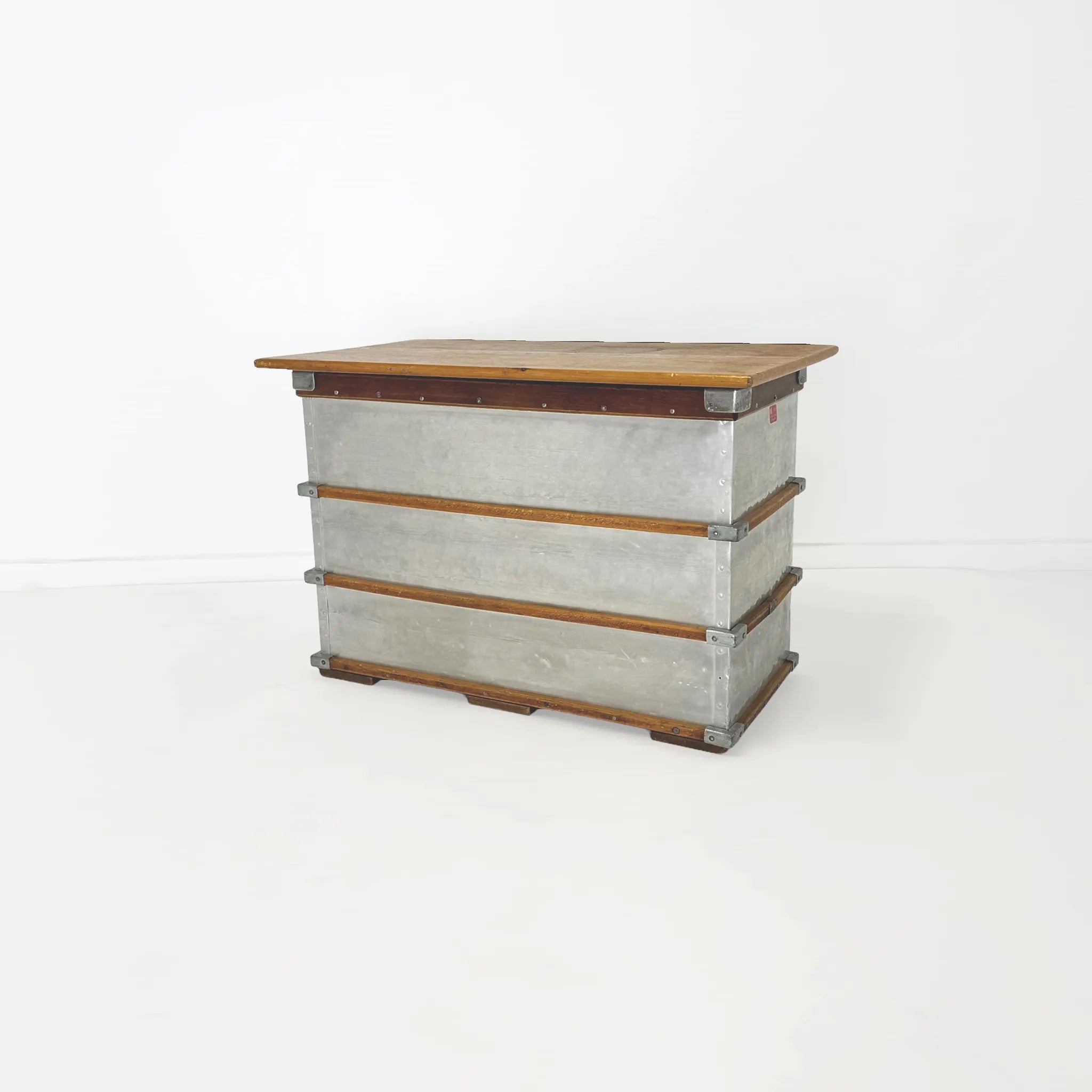 アルミとウッドを組み合わせた、ごくシンプルなつくりのストレージ。フタにもボックス部分にもしっかりと施されている補強が、デザイン上のアクセントにもなっています。仕切りがないので、大物ツール類やシーズンオフのファブリック、おもちゃなどもたっぷり入ります。普段は壁付けで作業台として使ったり、アイランド使用でカウンターテーブルのように使っても◎