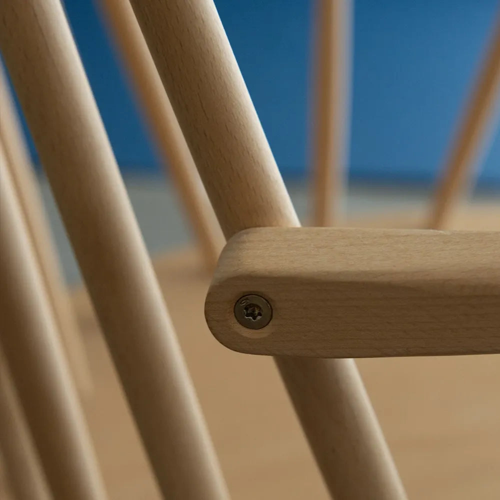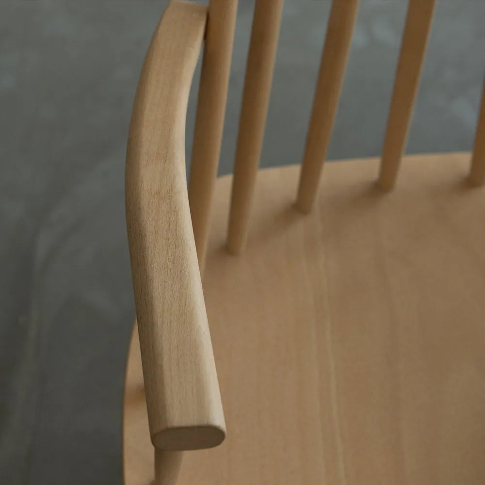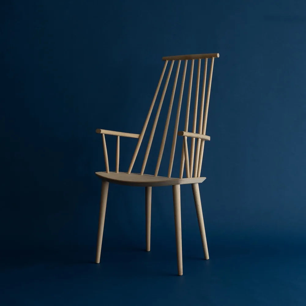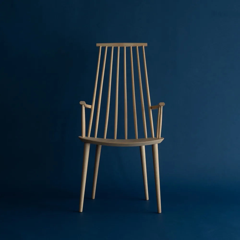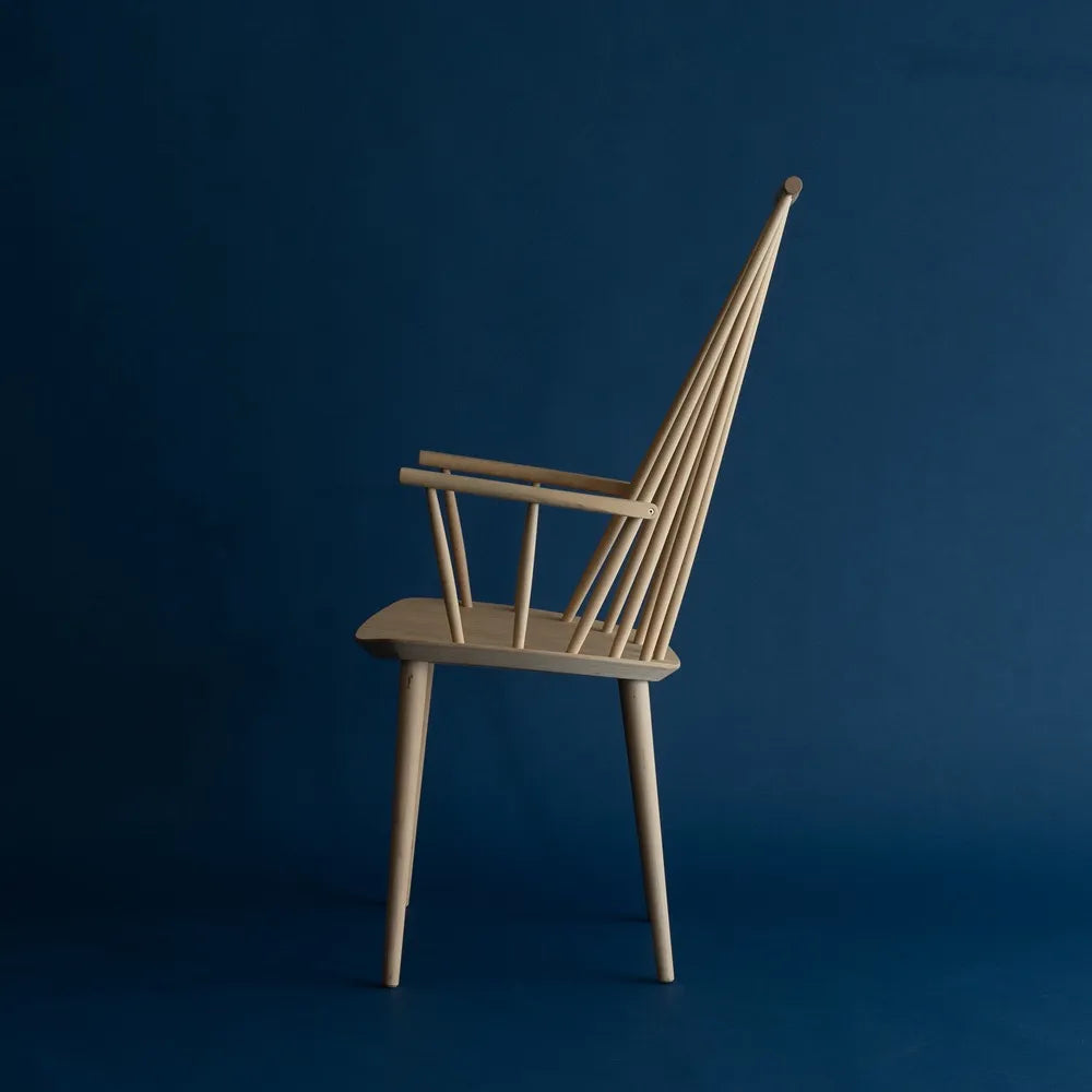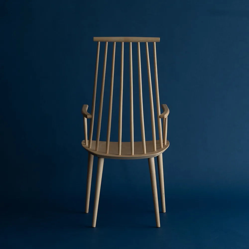 デンマークを代表するデザイナー、ボーエ・モーエセンによってでデザインされたJ110チェアの復刻版。背もたれとアームに連続するスピンドルが印象的なデザイン。ナチュラルウッドがお部屋を明るく